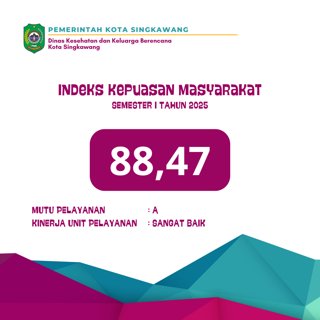 Indeks Kepuasan Masyarakat (IKM) Semester 2 Tahun 2024 88.11 Indeks Kepuasan Masyarakat (IKM) Semester 1 Tahun 2025 88.47 DINAS KESEHATAN DAN KELUARGA BERENCANA